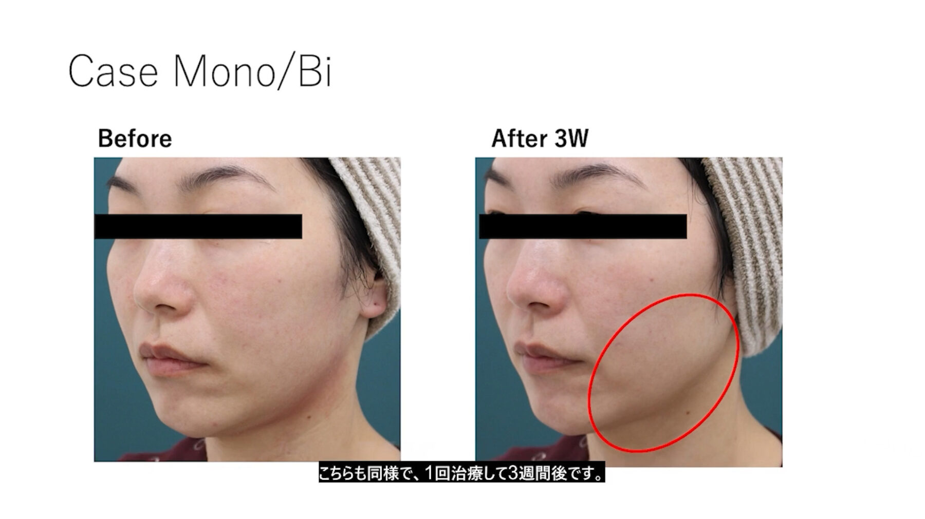 Patients seek “immediate results” and “long-lasting outcomes.” The new RF technology achieves both by delivering monopolar and bipolar energy through the same electrode. Bipolar provides instant tightening, while monopolar promote gradual collagen remodeling over time. Actual cases show visible facial contour improvement right after treatment, with effects maintained even three weeks later. The deep thermal action demonstrates unparalleled longevity.