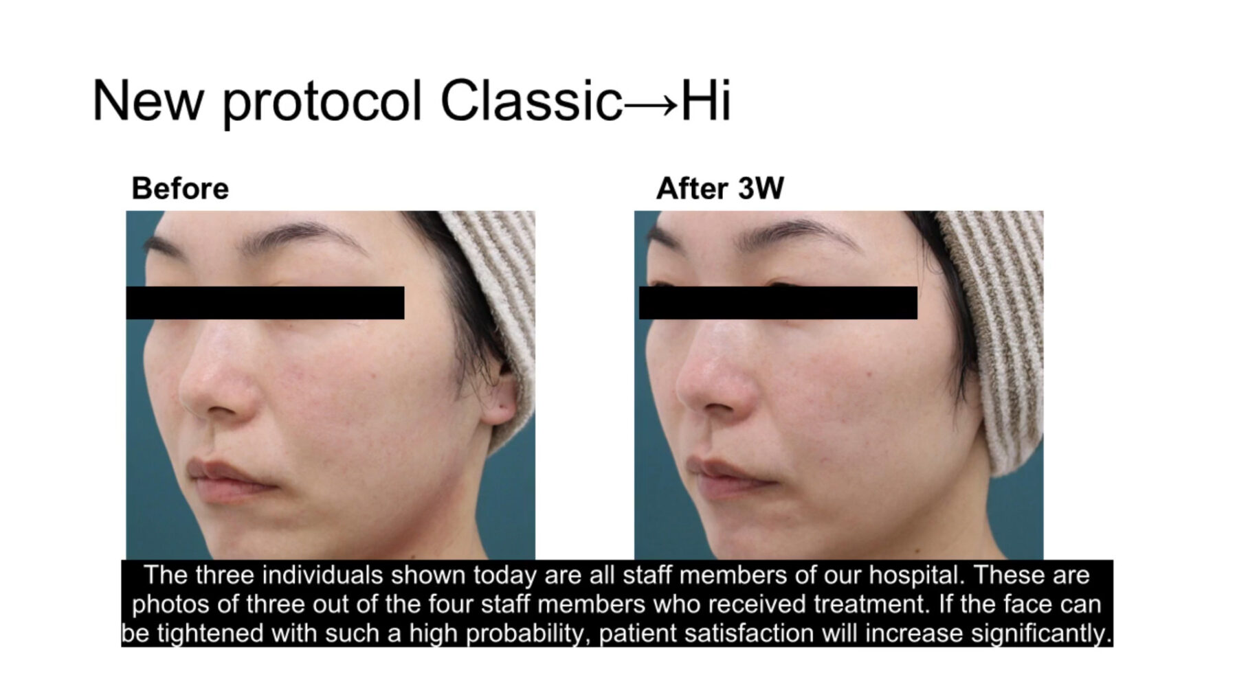 Our clinic frequently employs a method where 200 to 300 shots are administered using the Classic Tip, followed by an additional 100 to 150 shots with the High Tip. Treatment time is short, taking about 20 minutes for 450 shots. Pain is mild, and the high patient throughput offers significant operational benefits. In our staff’s cases, facial contour tightening is evident, with visually confirmed results in nearly all cases. We also plan to introduce the new Alpha Tip, which is designed to accumulate heat more uniformly over a wider and deeper area. DENSITY, with its excellent balance of immediate results, lasting effects, and equipment investment recovery, has the potential to become the new central device for skin tightening treatments.