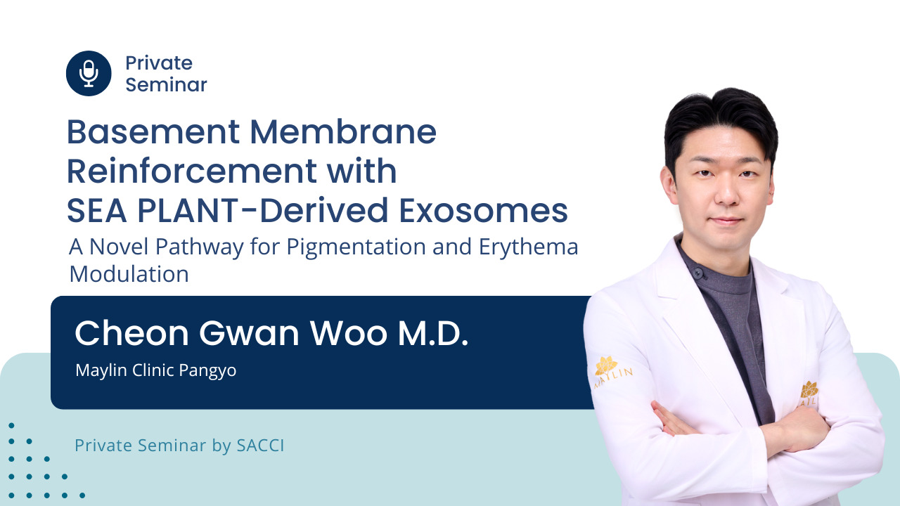 In this webinar, Dr. Cheon Gwan Woo, Director of Maylin Clinic Pangyo in South Korea, presented on the fundamentals and clinical applications of “EXO-BM,” an exosome preparation derived from the sea plant Gamtae (Korean brown algae). He provided detailed explanations, supported by evidence and actual case studies, covering the strengthening of the basement membrane, approaches to UV-induced pigmentation and inflammatory skin conditions, and combination therapies with energy devices such as POTENZA.