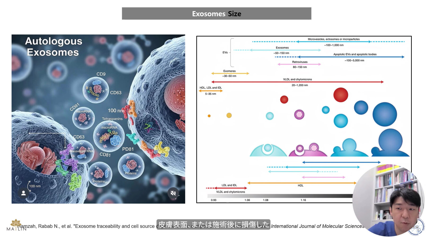 Exosomes are vesicles around 30 to 150 nm in size, which translates to massive complexes with molecular weights ranging from 10⁶ to 10⁹ Da. Therefore, considering the so-called “500-dalton rule,” it is not realistic to expect them to pass through the stratum corneum by simple diffusion. I view topical exosome formulations not as products designed to “penetrate,” but primarily as agents that “activate” the surrounding microenvironment via receptors on keratinocytes and fibroblasts present in the epidermis and superficial dermis.